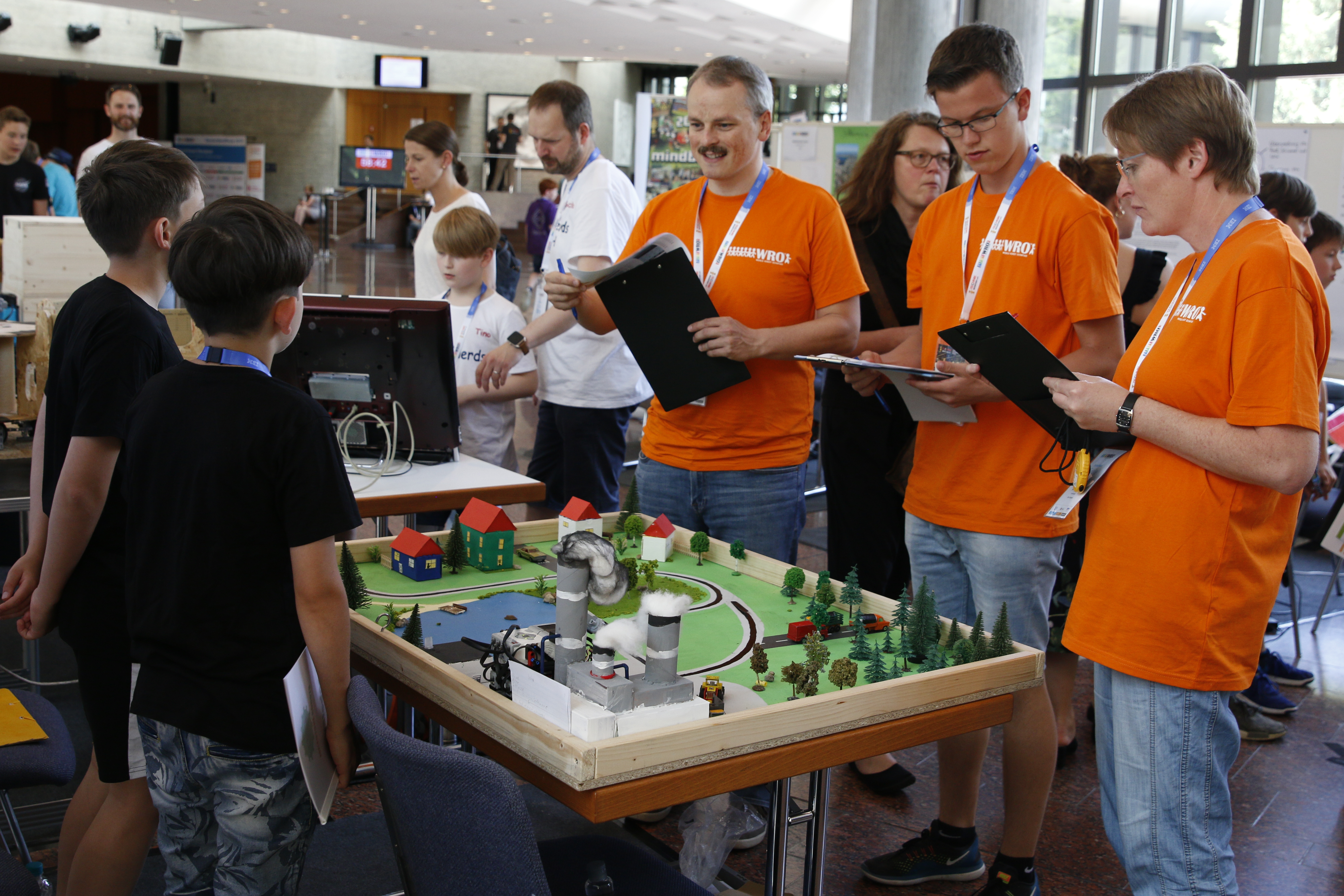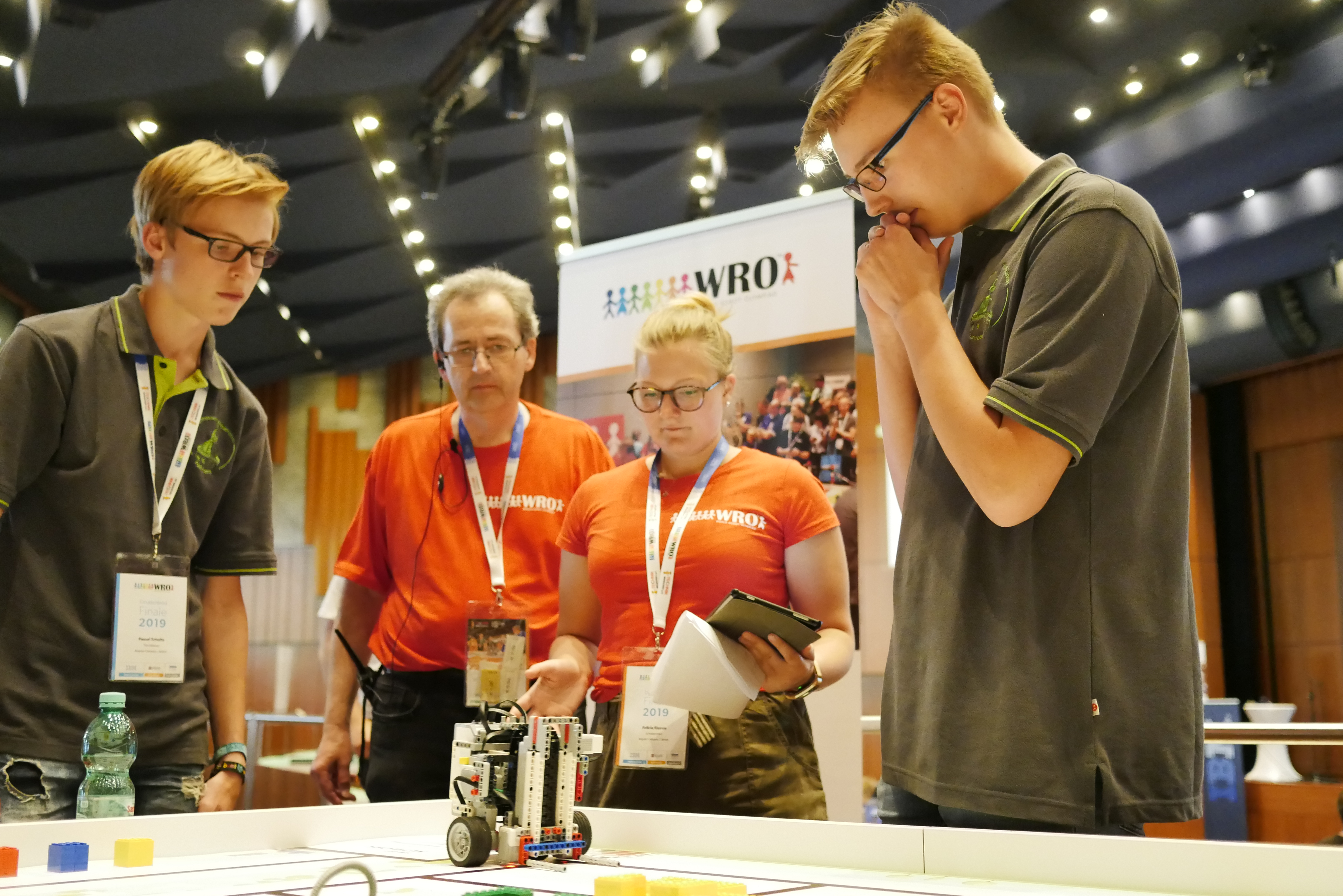 Robo Mission_Teammitglieder und die Schiedsrichter beobachten den Roboter beim Lösen der Parcoursaufgaben © TECHNIK BEGEISTERT e.V..JPG - JPG - 6.28 MB