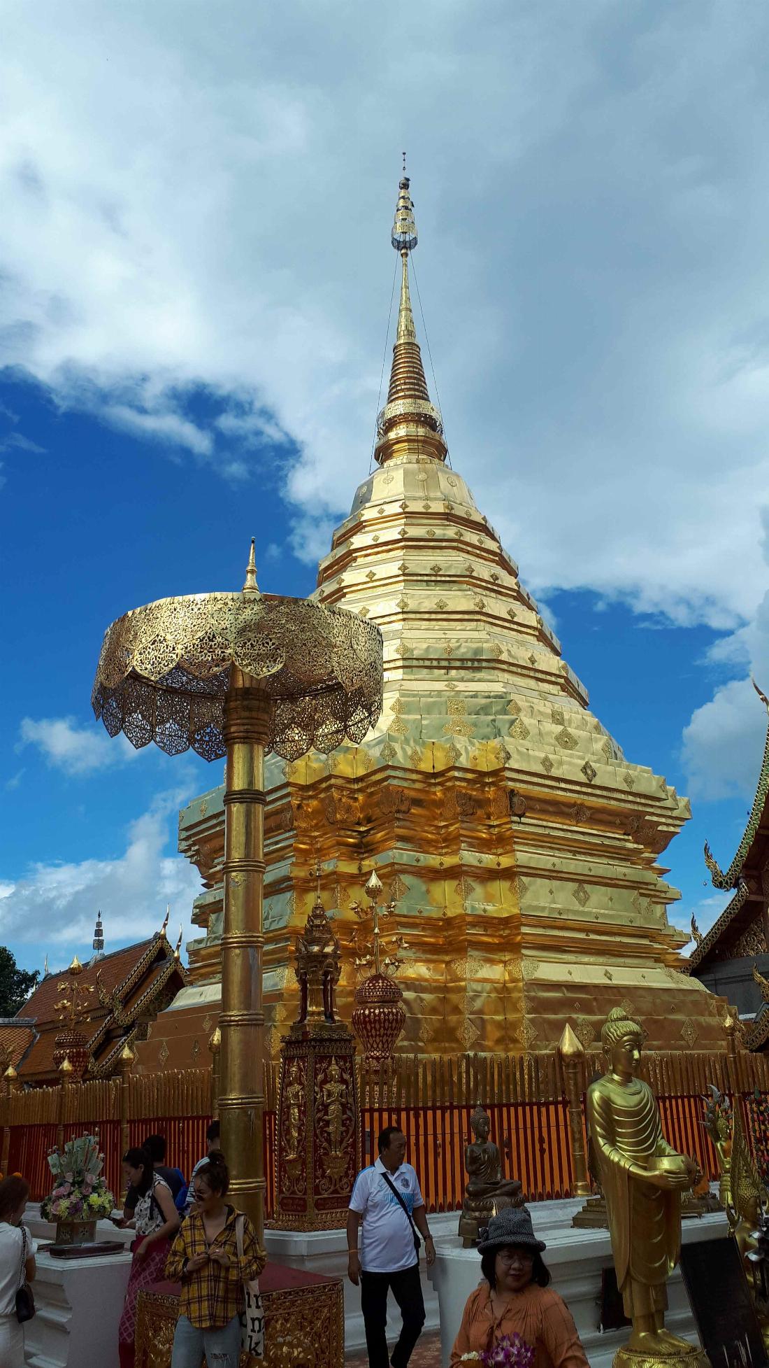 Zwischen Deutschlandentscheid und Weltfinale musste jedoch noch einiges geschafft werden. Das Modell wurde verbessert, die Plakate neu gestaltet und ein Video zum Projekt erstellt. Am 14.11. war dann der Tag der Abreise. Unser Modell war auf die Koffer und eine Holzkiste verteilt und um 4:30 Uhr ging es los zum Bahnhof. Das Ziel war der Frankfurter Flughafen, von dem aus unser Flug nach Bangkok starten sollte. „Fast“ problemlos kamen wir durch alle Sicherheitskontrollen und wir konnten uns im Flugzeug erstmals entspannen. Nach ca. zehn Stunden Flug sind wir in Bangkok gelandet, wo wir wieder durch Sicherheitskontrollen und zu unserem zweiten Flug mussten, der uns nach Chiang Mai bringen sollte. Nach weiteren 1,5 Stunden Flug war auch dies geschafft und sogar alle Koffer und die Kiste haben den Flug anscheinend unbeschadet überstanden. Wir durften dann auch direkt zum Hotel und dort schon mal einchecken und unser Gepäck abstellen, bevor wir dann mittags wieder zum ersten Programmpunkt, einer Fahrt zu verschiedenen Tempeln der Stadt, aufbrechen mussten. Die Tempelanlagen waren sehr beeindruckend, auch wenn wir von der langen Anreise und einer Zeitverschiebung von sechs Stunden erschöpft waren. Highlight der Tour war der Besuch des Nacht-Basars, auf dem wir mit Verkäufern um die Preise feilschen mussten.